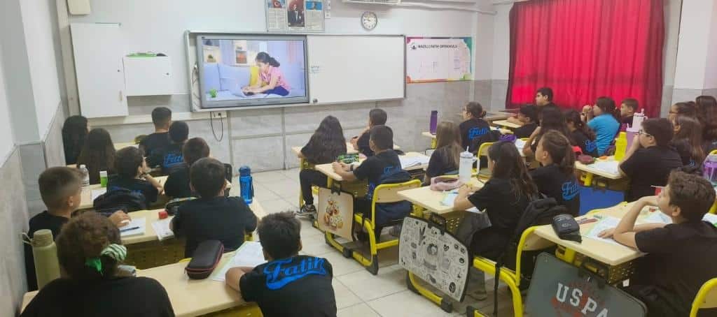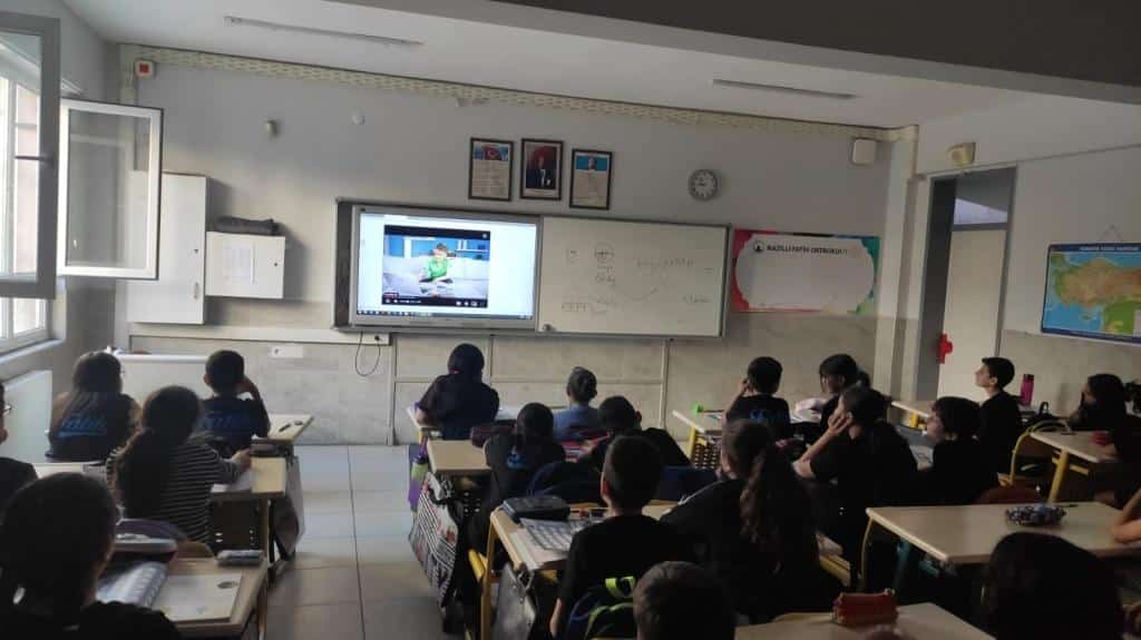 2.ders saatinde MEBİ Öğrenme Platformu tanıtım videosu öğrencilere izletildi. Uygulamaya öğretmenler tarafından giriş yapılarak tanıtıldı.